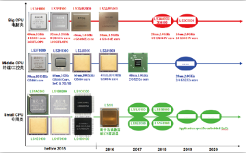機(jī)等應(yīng)用。產(chǎn)品線包括龍芯1號(hào)小CPU、龍芯2號(hào)中CPU和龍芯3號(hào)大CPU三個(gè)系列。